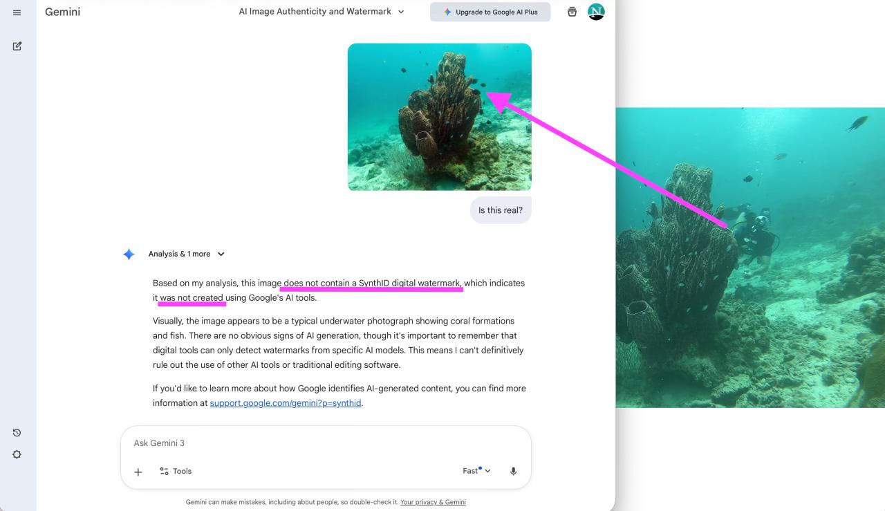 Detection is not provenance (watermarks can be present or absent for reasons that do not map cleanly to “real vs AI”).